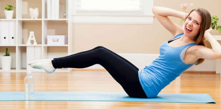 Les exercices permettent d’éliminer la graisse au niveau du ventre. Pour les effectuer, vous aurez besoin d’un tapis. Il existe plusieurs exercices d’abdominaux. Nous vous parlerons ici des crunchs. En position de départ, tenez-vous allonger sur le dos. Posez ensuite vos pieds sur un support surélevé tel un banc ou une chaise. Veillez à ce que la position de vos pieds soit parallèle au sol. Croisez vos mains derrière votre tête et gardez vos coudes écartés. Ramenez votre poitrine vers vos jambes en expirant et inspirez en redescendant. Ne tirez surtout pas sur votre tête pour essayer d’effectuer le mouvement.
